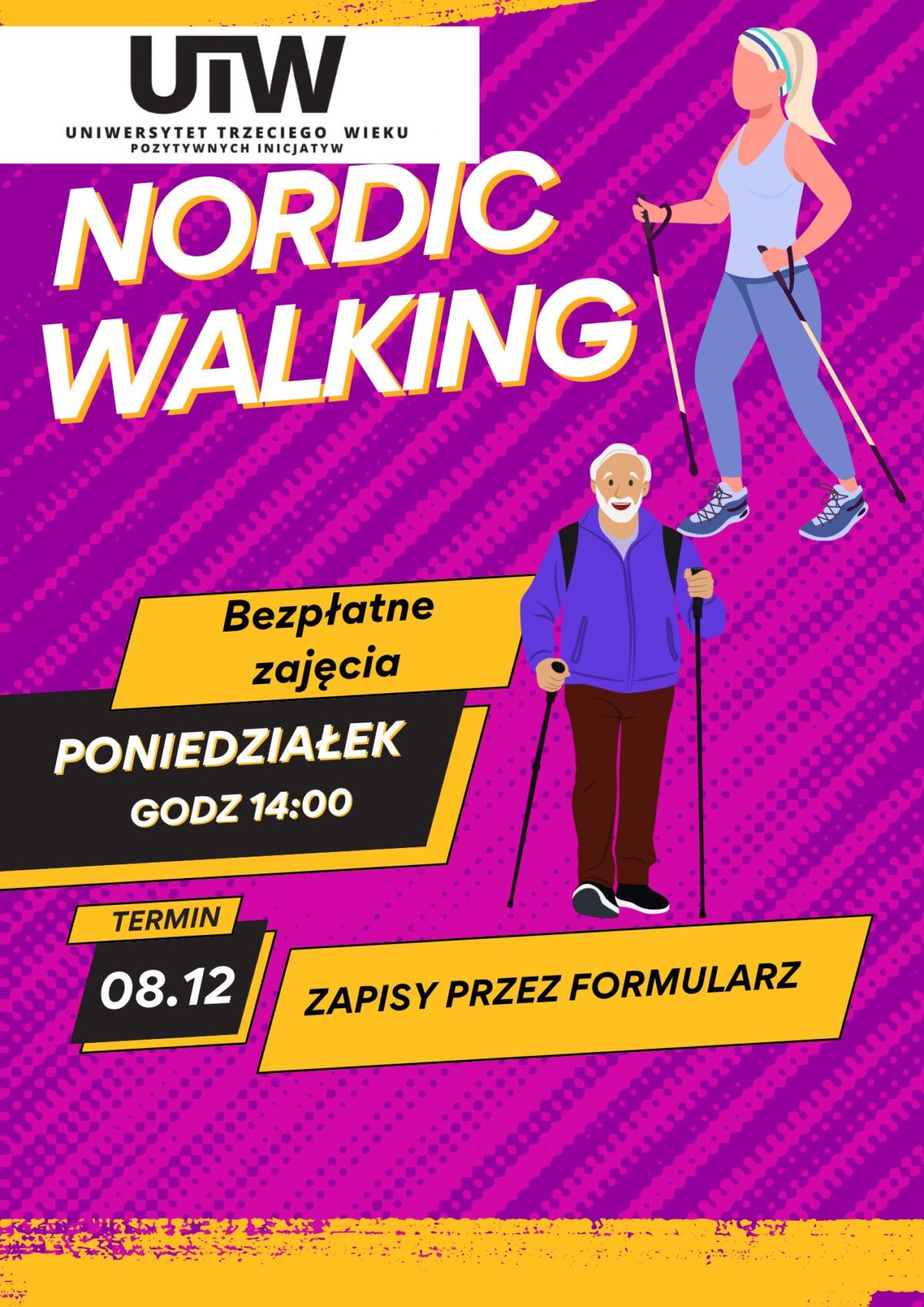 Serdecznie zapraszamy wszystkich seniorów na zajęcia nordic walking, które odbędą się w poniedziałek, 8 grudnia o godz. 14:00